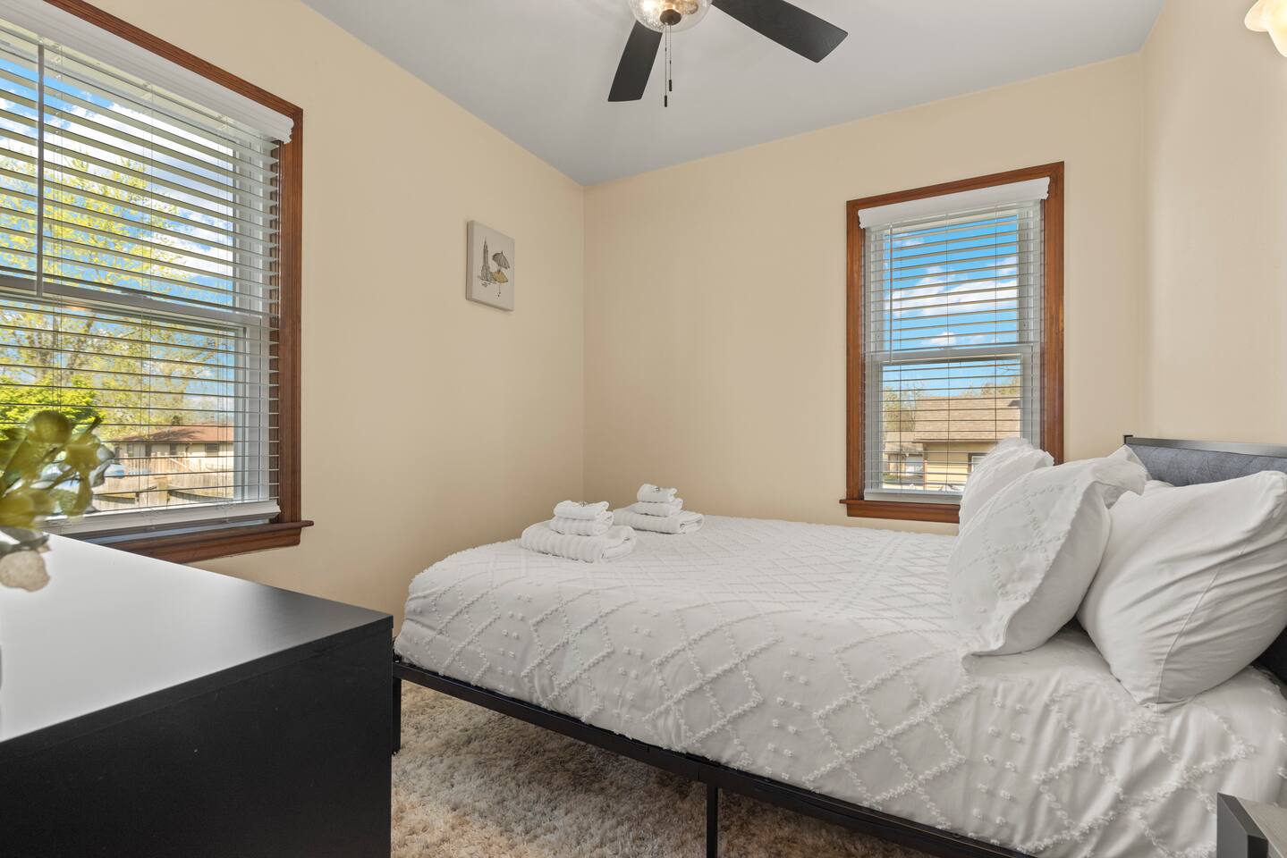 The Gilded Cottage Entire Home in Winnebago IL A refined, family friendly mid century retreat near Rockford, wedding venues, nature, and ideal for working stays ⸻ 🌟 About This Space Welcome to The Gilded Cottage, a professionally managed entire home short term rental in Winnebago Illinois. This updated three bedroom home blends mid century charm, modern comfort, and practical design making it a great fit for families, couples, remote professionals, and traveling workers seeking a quiet, clean, non party home near Rockford. Whether you are visiting for a weekend getaway, winter stay, wedding weekend, extended family visit, or a local work assignment, the home offers privacy, comfort, and dependable amenities in a peaceful residential neighborhood. ⸻ 🛋 Living Room Relax Work and Unwind The living room is designed to support both downtime and productivity. Comfortable seating makes it easy to relax after a long day, enjoy movie nights on the 54” Smart TV with Netflix, Amazon Prime Video, and Disney+, or start the morning with coffee and planning. Board games and cozy accents encourage connection, while the calm layout and natural light make the space comfortable for reading, remote work, or quiet evenings in. A piano adds a unique and welcoming touch for guests who enjoy music. ⸻ 🍽 Dining Room Meals or a Functional Work Space The dining area is set up for flexibility. It works equally well for family meals, shared dinners after work, or spreading out paperwork and laptops during longer stays. Guests on extended assignments appreciate having a comfortable table for planning the next day or catching up on work. ⸻ 🧸 Kids Play Zone Family Friendly Setup A dedicated kids play area makes this home especially popular with families and longer stays. The play zone includes • Oversized bean bags and child seating • Cars, trains, and Duplos • Child guitar • Play kitchen store A Pack n Play and extra toddler mattress are also provided helping families and working parents travel more comfortably. ⸻ 🛏 Bedrooms Rest After Long Days The home comfortably accommodates families coworkers and small groups • Two queen bedrooms on the main level • One king bedroom upstairs ideal for parents couples or lead workers All bedrooms include premium linens ceiling fans and calming decor ideal for restful sleep after physically demanding days or long hours on the road. ⸻ 🍽 Kitchen and Dining Fully Equipped for Real Life The fully equipped kitchen supports • Home cooked meals • Early morning starts • Longer or repeat stays • Guests working locally who prefer eating in The dining area doubles as a gathering or planning space. ⸻ 🌿 Clean Quiet and Comfortable This home is intentionally maintained for guests who value rest and respect • Professionally cleaned between every stay • High filtration air system plus air purifiers in each bedroom • Whole home water softener • Smoke free home no smoking or vaping • Quiet residential neighborhood with enforced quiet hours This is not a party house and is best suited for respectful guests families and working professionals. ⸻ 📍 Location Near Rockford Job Sites Wedding Venues and Nature Located in Winnebago Illinois with easy access to • Rockford area job sites and businesses • Popular wedding venues • Local restaurants and shops • Scenic nature preserves and walking areas Guests appreciate the balance of convenience privacy and a calm place to return after work or events. ⸻ ✅ Ideal For • Families with children • Couples wanting extra space • Multi generational trips • Wedding guests • Remote workers needing a quiet home base • Traveling professionals on local assignments • Longer or repeat stays • Guests seeking a clean entire home ⸻ ❌ Not a Fit For • Parties or events • Loud gatherings • Nightlife focused stays ⸻ ✨ Why Guests Choose The Gilded Cottage Guests consistently mention • Exceptional cleanliness • Comfortable beds • Family friendly amenities • A quiet peaceful environment ideal for rest and work